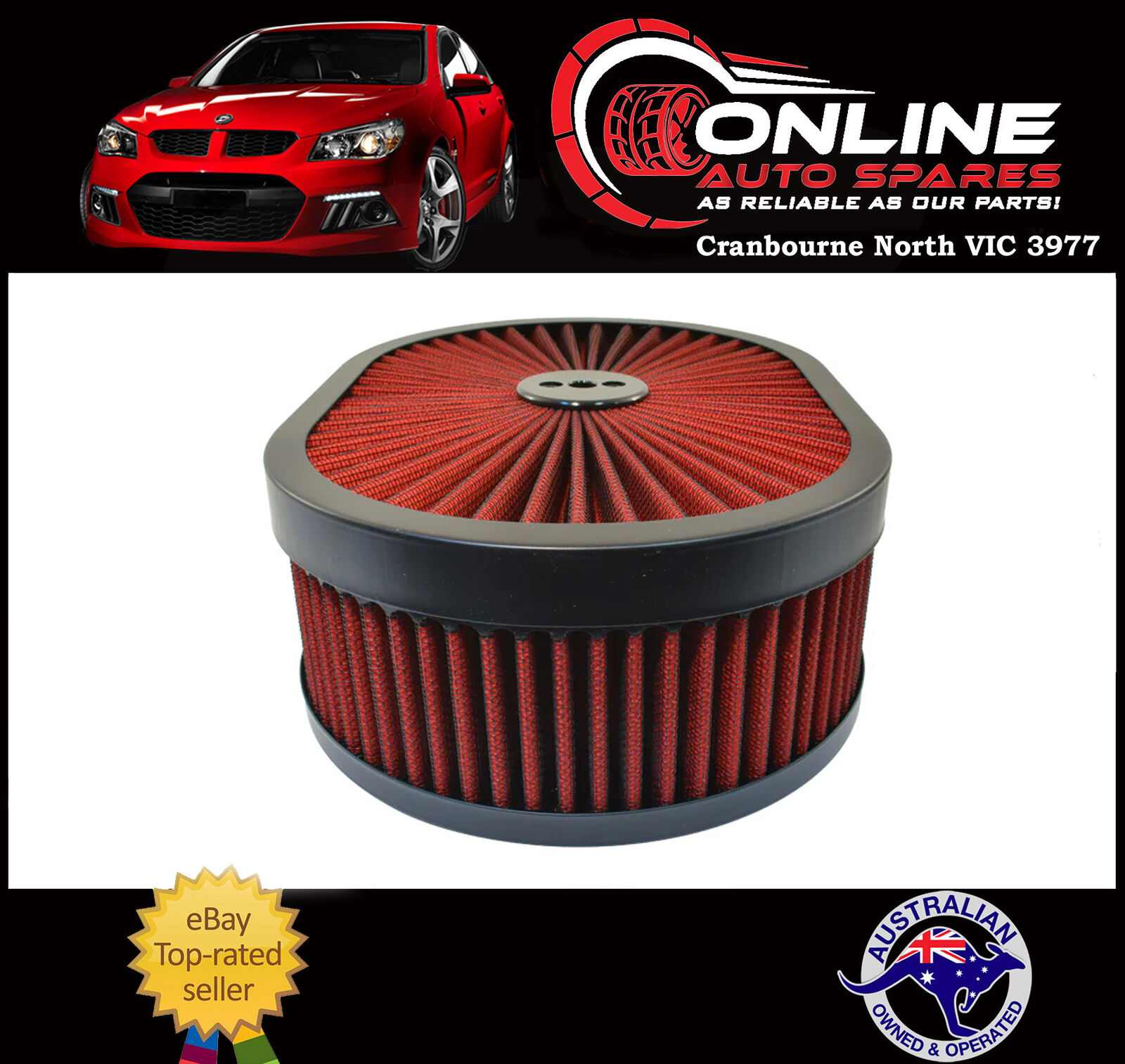 Extreme Flow Oval Air Cleaner 11-3/8x3" RED 5-1/8 Neck fit Ford Holden V8 filter