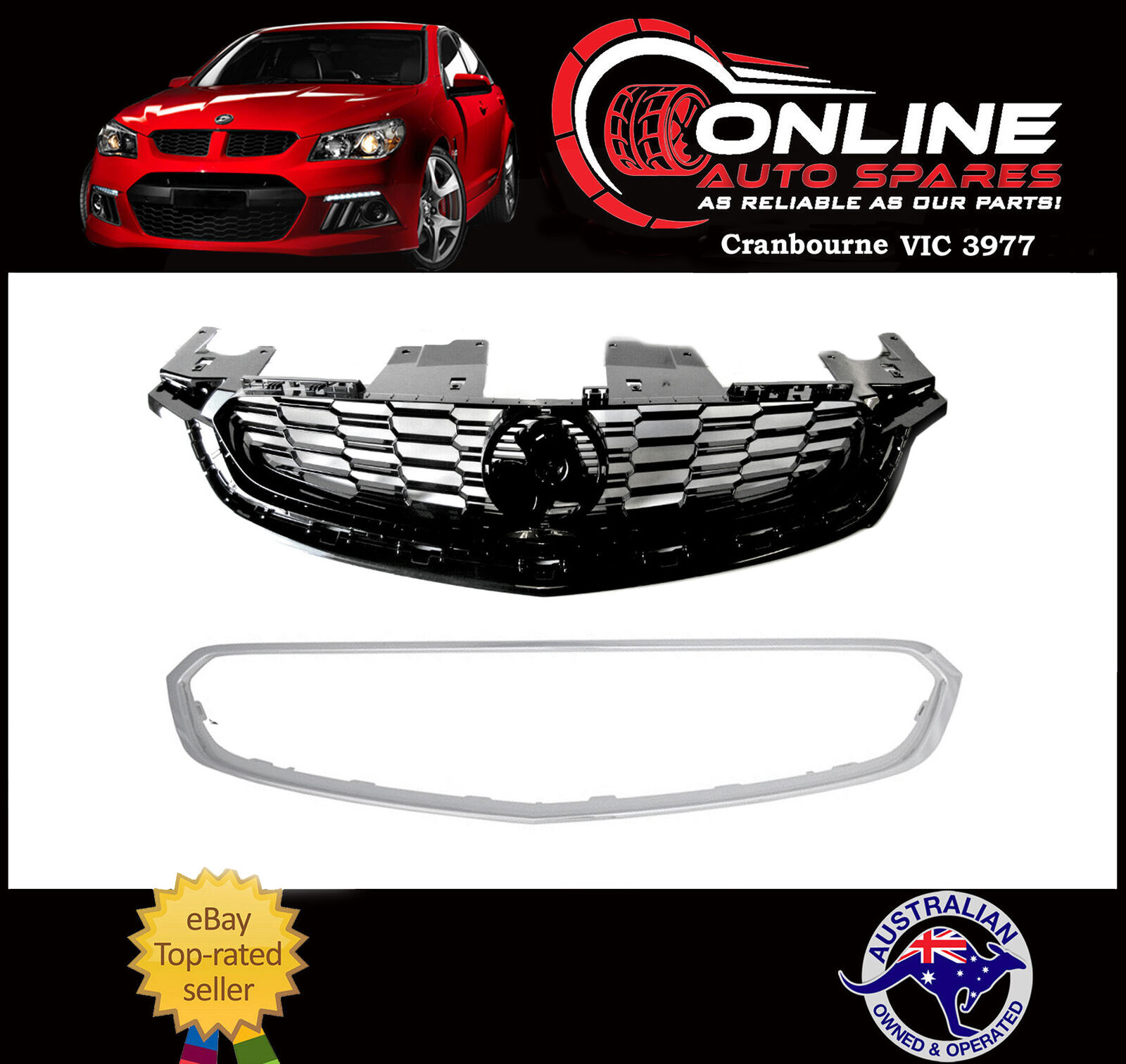 Upper Grille PAINTED + Chrome Surround Holden Commodore VF S2 SS/SSV/SV6 2015-17
